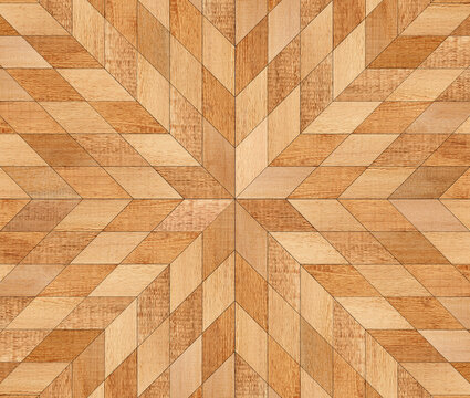 Light brown wood texture background. Rough wooden surface. Mosaic wooden floor with geometric pattern.