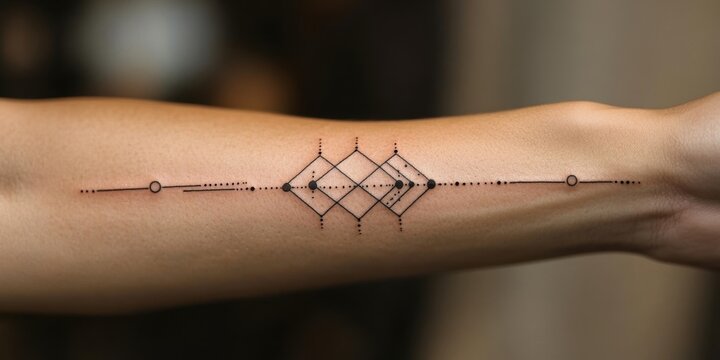 Minimalist bracelet tattoo featuring fine line geometric shapes on the arm, showcasing simplicity and elegance in black ink design