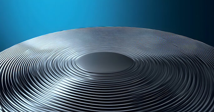 Concentric circles of blue, white and gray dots on a gradient blue background create a modern and abstract design, perfect for technology or data concepts