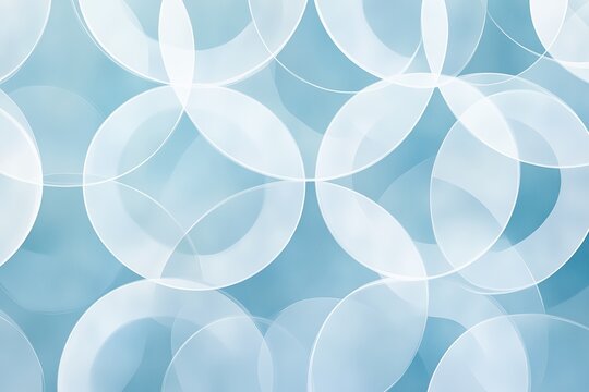 Abstract background with interlocking circles in white and light gray on a soft blue background