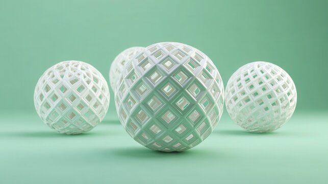 Group of white 3D lattice geometric spheres on a light green background