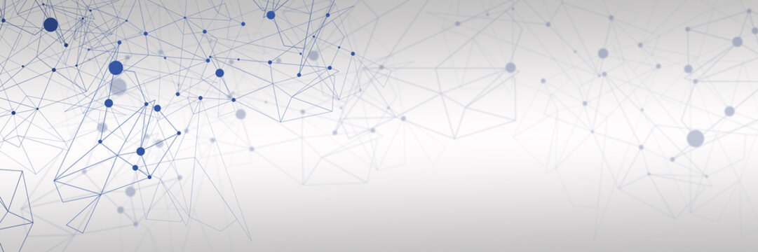 Abstract futuristic network of interconnected nodes and geometric shapes representing digital technology and data flow.