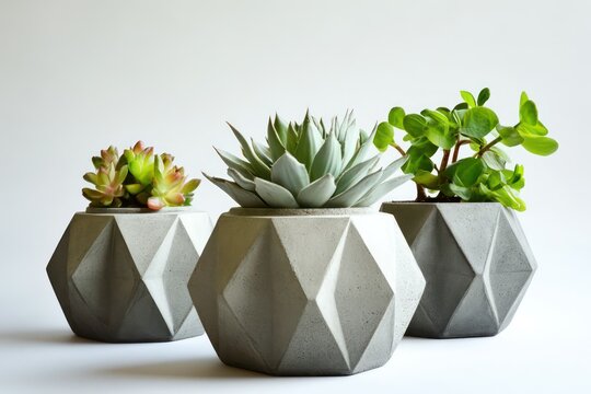 A trendy geometric planter made of raw concrete, with a textured surface and contemporary appeal.
