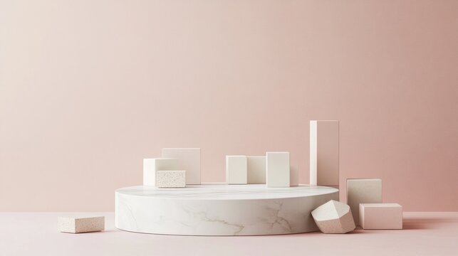 Marble podium, geometric shapes, pink background, product display