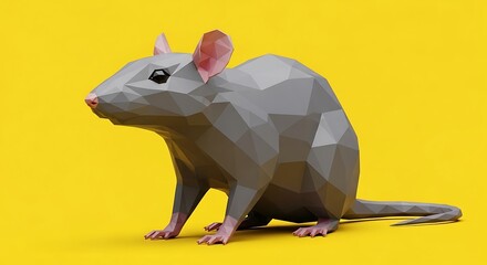 Lowpoly rat with yellow background.