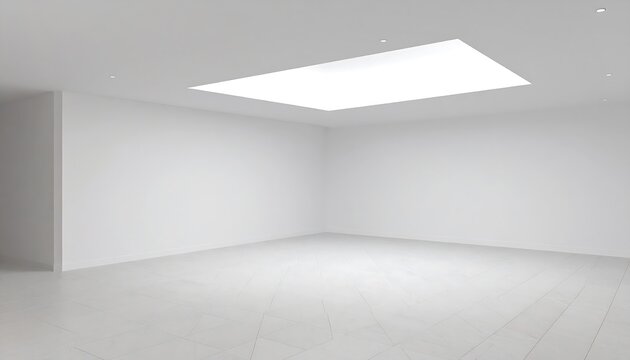 Contemporary architecture, empty white room, large skylight window, concrete floor.