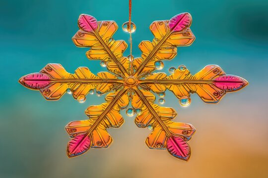 Festive winter snowflake pattern on a vibrant red orange gradient background with sparkling lights.