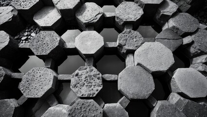 Monochromatic Abstract Basalt Columns - A Striking Display of Natural Geometric Formations.