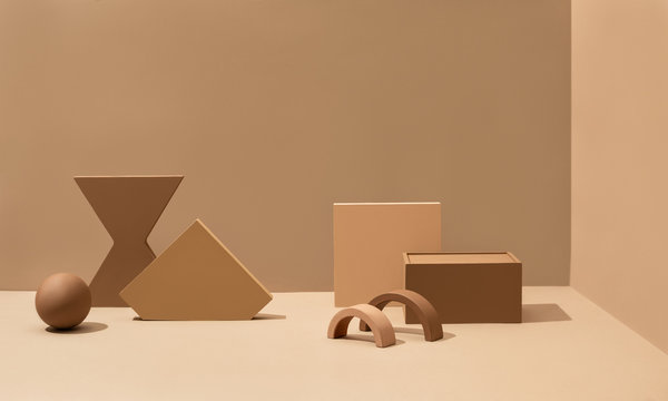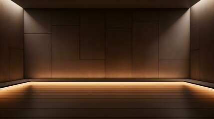 Empty geometrical Room in Brown Colors with beautiful Lighting. Futuristic Background for Product Presentation.