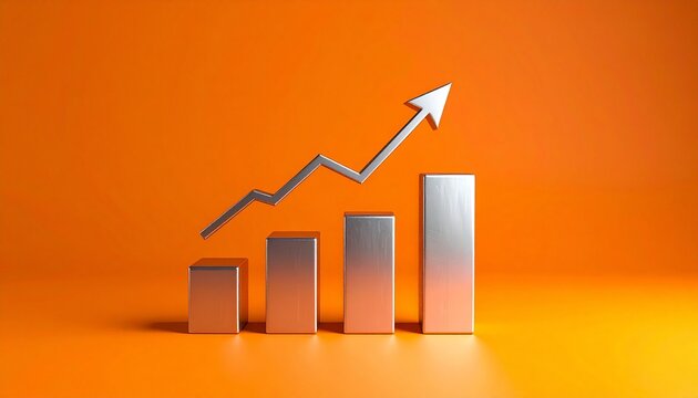 3D bar chart with upward arrow on orange.