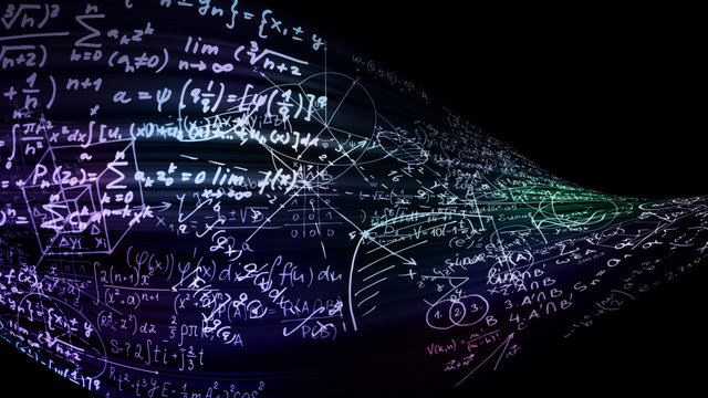 Abstract mathematical formulas on black background