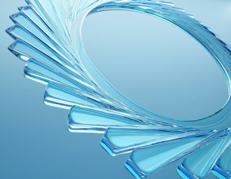 Circle made of glass shapes. 3d rendering.