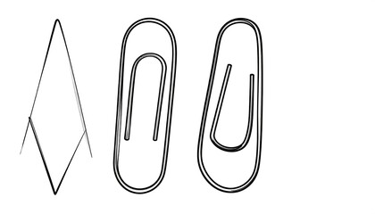 Simple black-and-white illustration showcasing a diamond shape next to two metallic paperclips, isolated on a white background