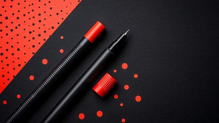 Creative setup with geometry tools and colorful markers on a sleek monochrome background Stock Photo with side copy space