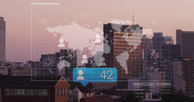 Futuristic world map dashboard showing real-time geospatial analytics and social metrics