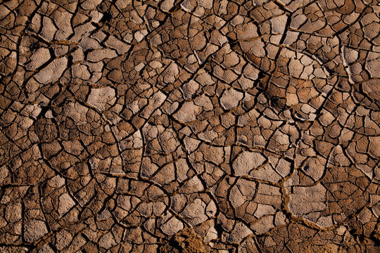 Breathtaking boiling mudpots in geothermal area Hverir and cracked ground around.