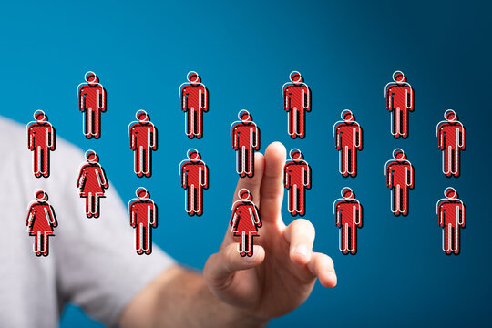 Concept of digital networking, connection, and social interaction with human icons and hand gesture