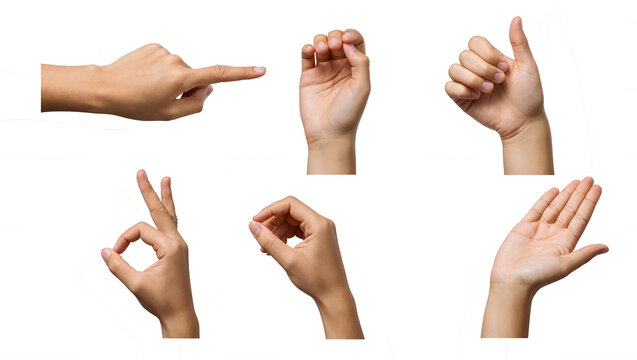 Hand gestures set six poses soft matte isolated on transparent background