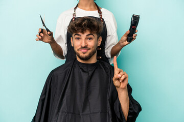 Father helping daughter get dressed on cozy sofa