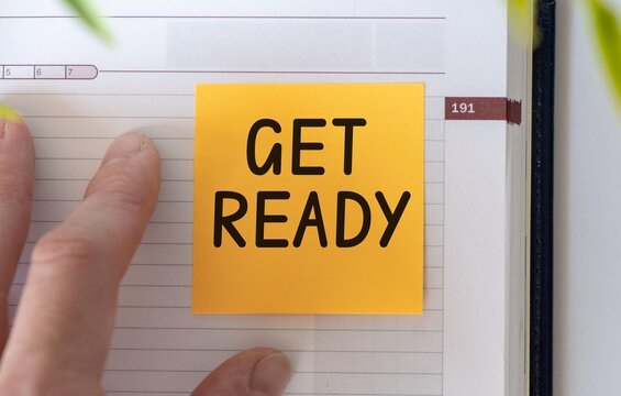 Get Ready Phrase on Letter Tiles on Yellow Background. Minimal Aesthetics.