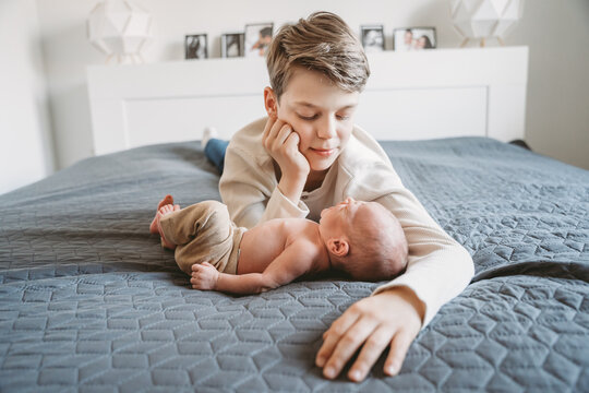 Joyful bride and bridesmaid preparing for wedding in bedroom