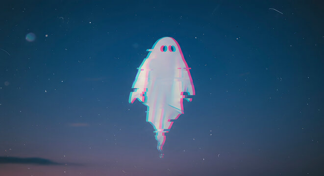 Ethereal ghostly figure glowing softly in a shadowy natural landscape