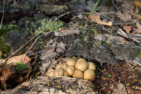 Puffball mushroom growing wild in Ontario, Canada