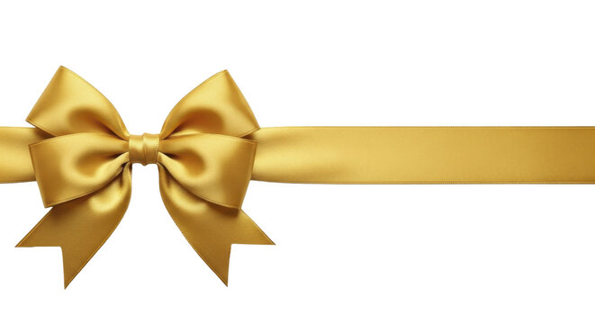 Golden satin ribbon bow and horizontal stripe on a transparent background PNG image. This elegant shiny gold gift wrap detail is a PNG file perfect for festive holiday designs and luxury celebrations.