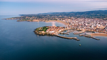 Aerial view of the city of Gijon in Asturias, Spain