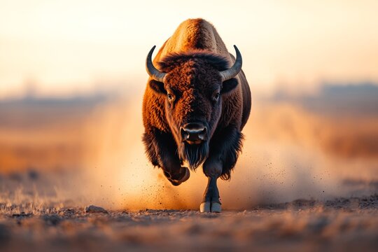 A Bison Running Through a Dust Cloud