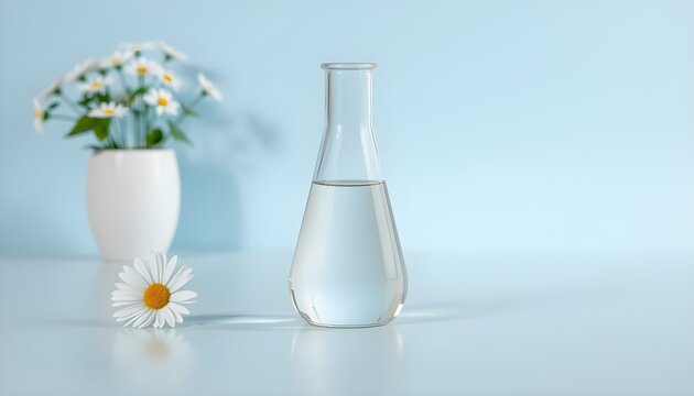 Minimalist still life with clear liquid in a test tube and ice