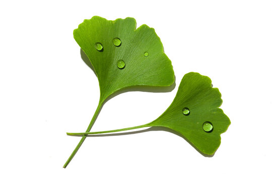 fresh wet ginkgo biloba leaves isolated on white background.