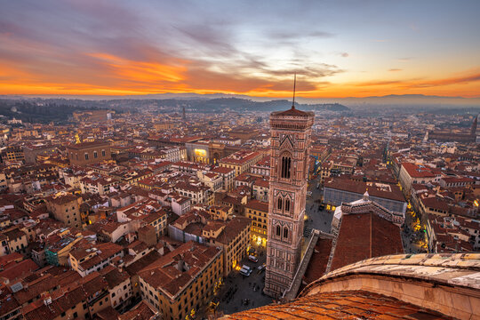 Cathedral Santa Maria del Fiore (Duomo) and Giottos bell tower (campanile), Florence, Italy