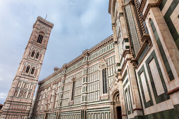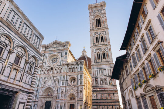 Basilica di Santa Maria del Fiore with Giotto campanile tower bell and Baptistery of San Giovanni. Florence, Italy.