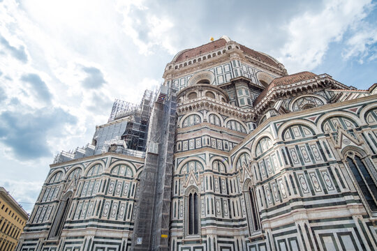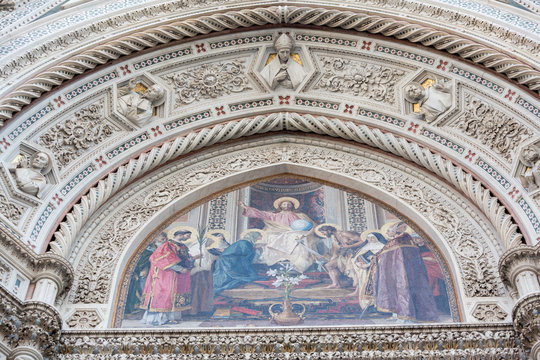 Detail of Florence Duomo Cathedral. Basilica di Santa Maria del Fiore or Basilica of Saint Mary of the Flower in Florence, Italy