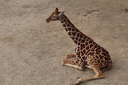 Small spotted wildcat peering from circular hole in oak forest floor with autumn leaves