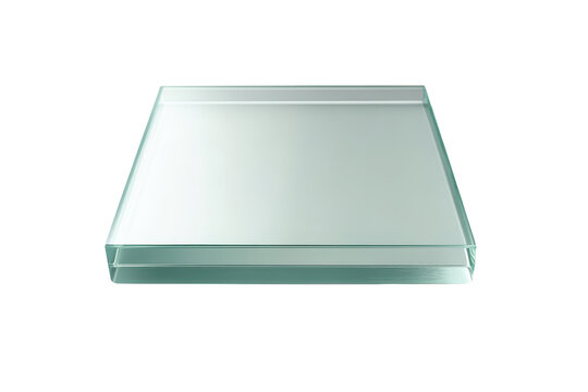 Clear glass square block isolated on transparent background. Clear glass square panel floating in space with a white edge showcasing a sleek isolated on white background.