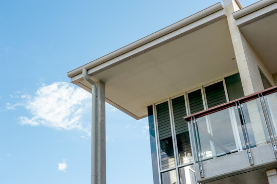 Glistening rain droplets clinging to window glass over blurred urban skyline in fog