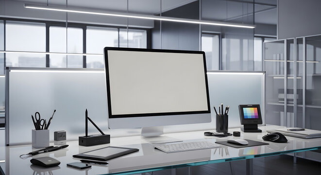 Woman Engaged with Desktop in Modern Tech Environment