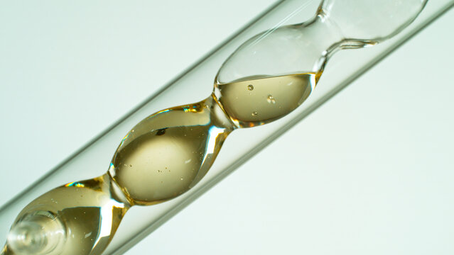 Getting natural oil from natural substances and flowers. Yellow oil flows in a spiral.