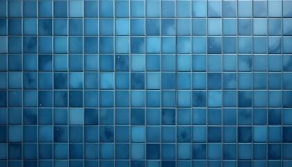 A modern wall covering features small, glossy, royal blue square tiles with light gray grout. The tiles are arranged in a uniform grid pattern for a clean and minimalist look.