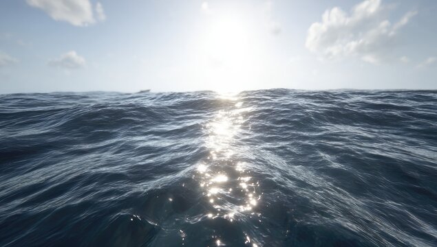 Sunlight glinting on the dynamic surface of the deep blue ocean waves