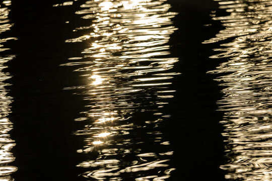 Abstract image shows ripples on water reflecting the late afternoon sun glinting brightly between shadows