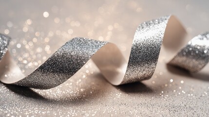 silver ribbon with glitter on soft surface flatlay elegant festive accessory concept for celebration holiday or decor
