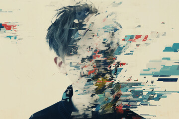 Abstract Digital Collage of a Man’s Face with Glitch Art Effects, Generative AI