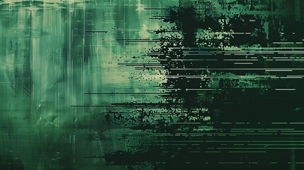 Intriguing digital distortion  a dark green background with captivating glitch effects and spots