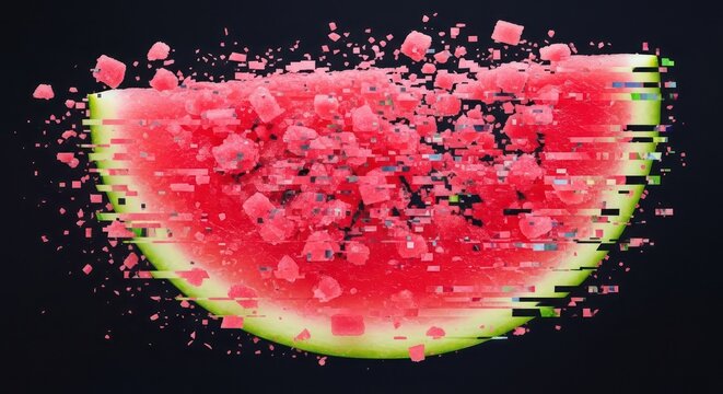 Watermelon slice glitch effect digital art abstract design