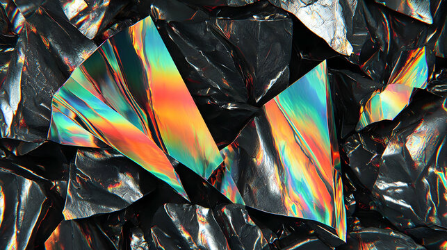 of iridescent tones, glitch textures, and flowing AI-designed forms
