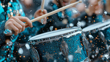 Shimmering indigo textile band sparkling with glitter and warm bokeh lights