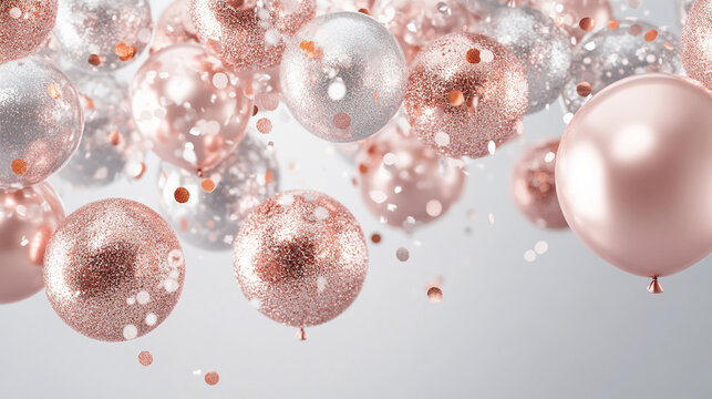 Elegant happy birthday celebration with balloons and confetti